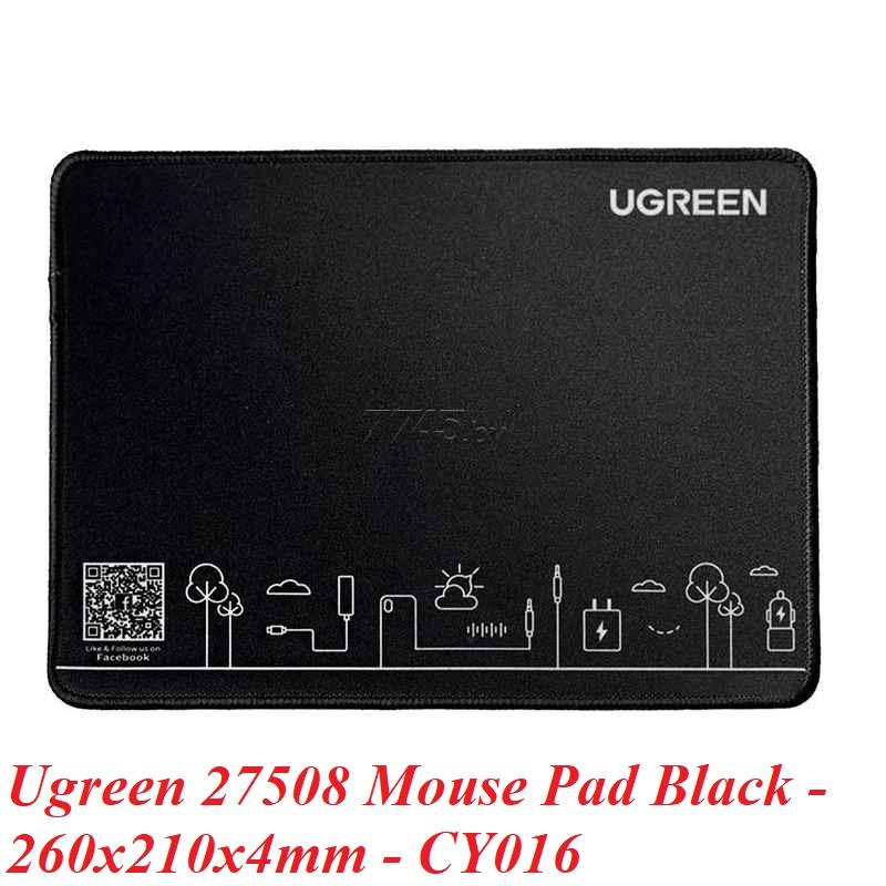 1. Brand: Ugreen 2. Product name: Mouse Pad 3. Model: 27508 - CY016 4. Color : Black 5. Material : Natural rubber 6. Thickness : 4mm 7. Size : 260 x 210 mm 8. 248