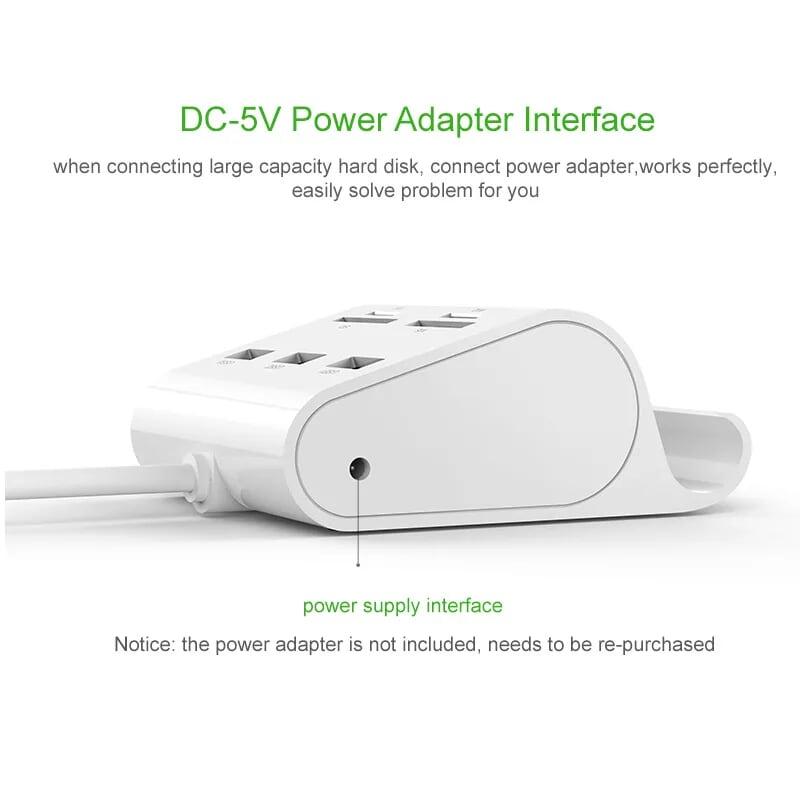 1. Input: USB 3.0 A Male 2. Output: USB 3.0 A Female × 4 3. Speed up to 5Gbps 4. Support 10 TB hard drive 5. With USB-C power port DC 5V 6. plug &