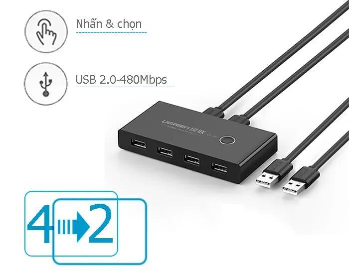✨Ugreen UG30767US216TK Bộ chuyển mạch USB 2.0 gộp 4 thiết bị vào 2 máy tính cao cấp - HÀNG CHÍNH HÃNG