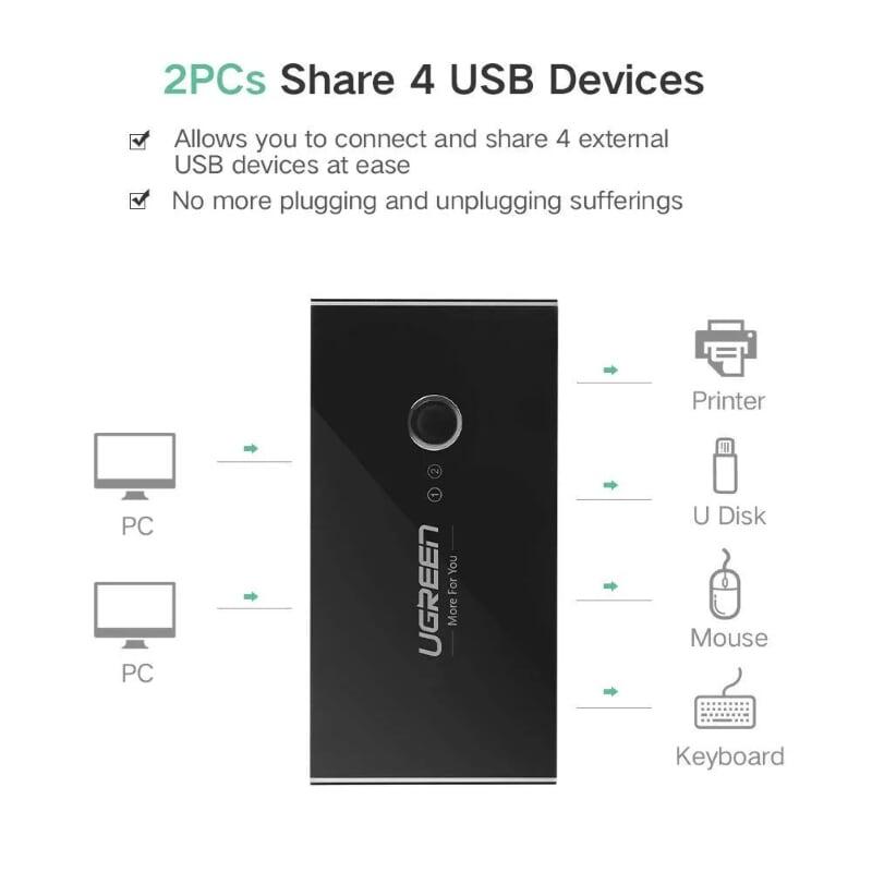 Mua tại TiktokUgreen 30767 2 in 4 out usb2.0 sharing switch box usb 2.0 us216