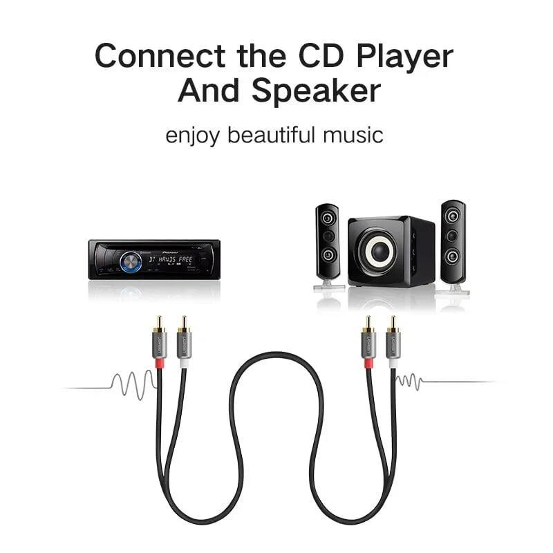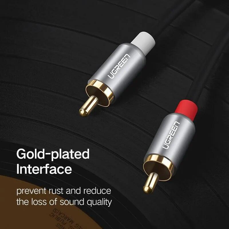 - Cáp Chuyển Đổi Ugreen 3.5mm Sang 2 RCA 10511 (1.5m) được dùng để kết nối từ điện thoại, máy tính, máy nghe nhạc… đến các thiết bị âm thanh có chuẩn RCA (hoa sen)