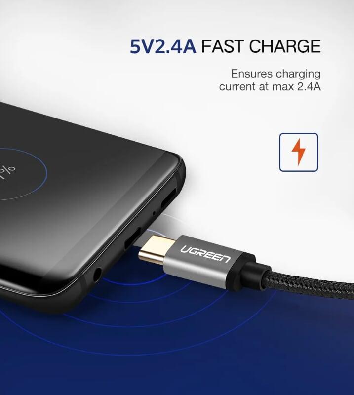 ✨Ugreen UG30880US174TK 1M 3A Màu Đen Cáp USB TypeC sang USB 2.0 Hỗ trợ sạc nhanh dây bên Nylon - HÀNG CHÍNH HÃNG