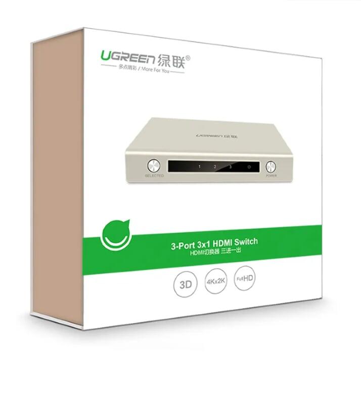 Bộ gộp HDMI 3 vào 1 ra hỗ trợ 3D full HD Ugreen 40234 chính hãng