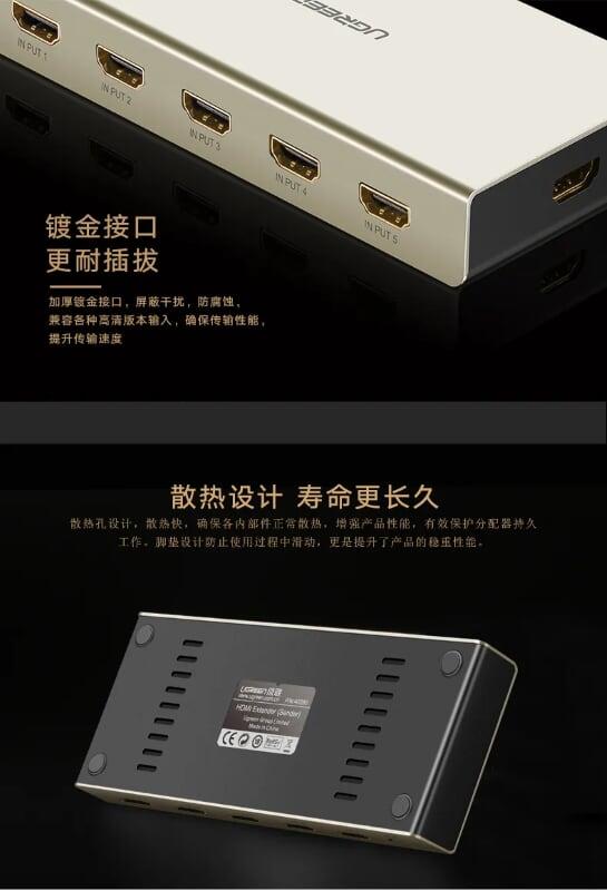 Mua tại TiktokUgreen 40279 Hdmi 5*1 Switch Zinc Alloy Case 40279