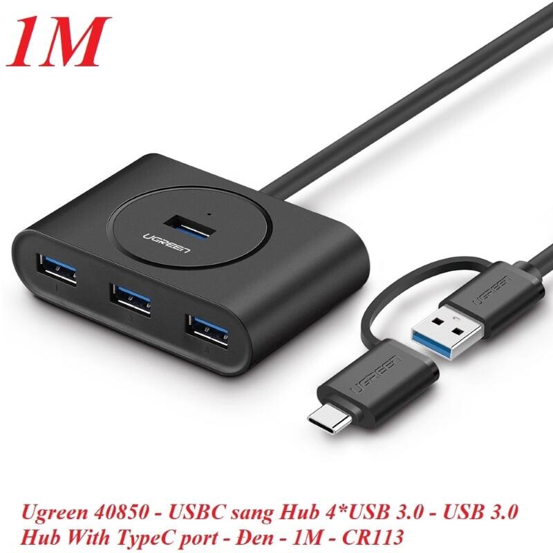 Mua tại TiktokUgreen 40850 1m usb 3.0 hub with type c port đen cr113