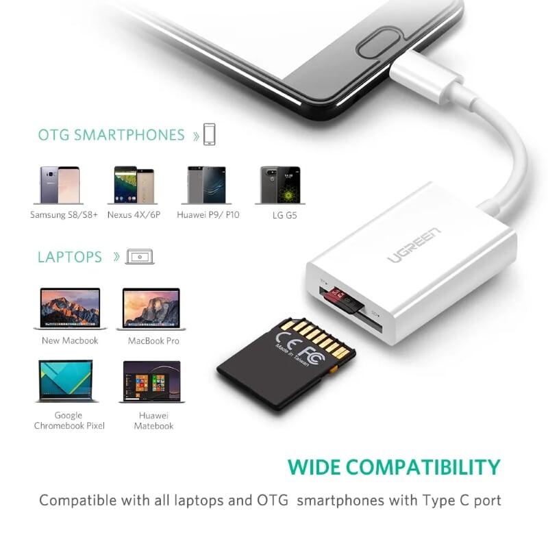 Mua tại TiktokUgreen 40864 type c to sd tf card reader 4.0 trắng us235