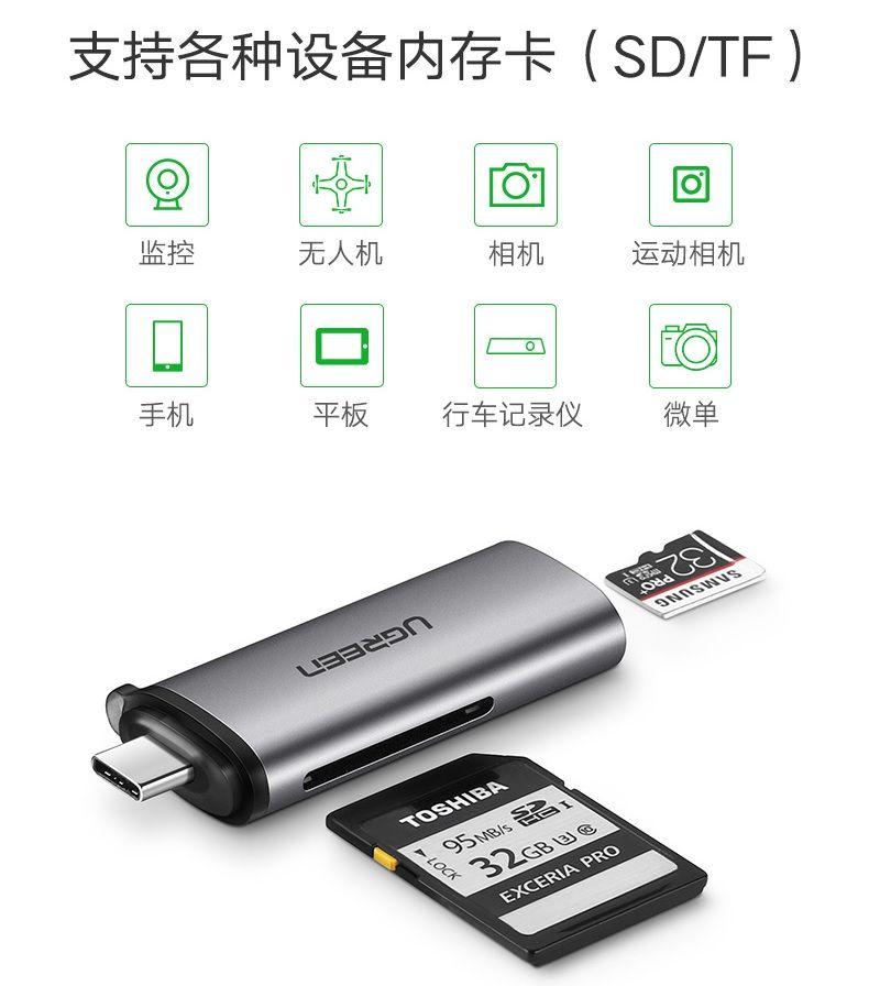Ugreen 40864 type c to sd tf card reader 4.0 trắng us235 1. Competence: your features, features, talents and talents. 2. Cable length: 73mm 3. Color: 4. Material: ABS 5. USB Type-C connector with OTG