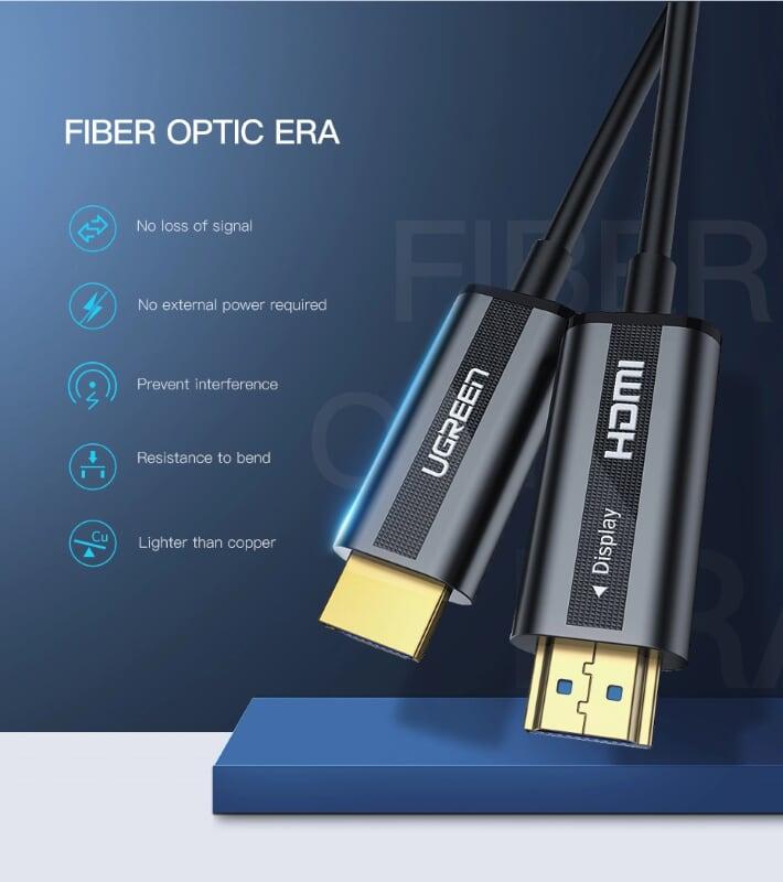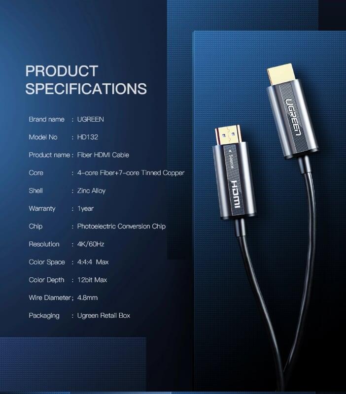 Ugreen 50717 10M Hdmi 2.0 Zinc Alloy Optical Fiber Cable Hd132 1. Catalog: HDMI Ugreen Cable 2. Features: Connect high-quality HDMI signal. 3. Cable standard: HDMI 2.0 4. Cable length: 10m 5. Bandwidth: 18Gbps (Optical)