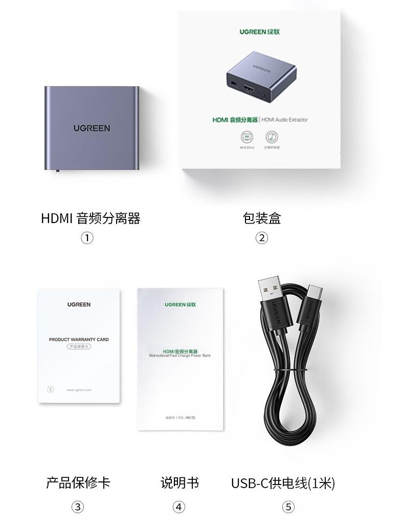 ✨Ugreen UG60649CM531TK 4K @ 30Hz Bộ chia âm thanh hình ảnh HDMI với cổng quang OPTICAL + 3.5mm - HÀNG CHÍNH HÃNG