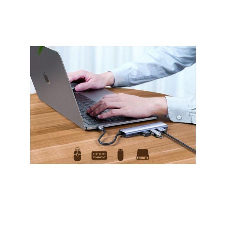 1. Hub đa năng 6 trong 1 Ugreen 80129 giúp bạn mở rộng từ 1 cổng USB Type C sang các cổng khác như HDMI, USB 3.0, khe đọc thẻ nhớ. Giúp bạn kết nối
