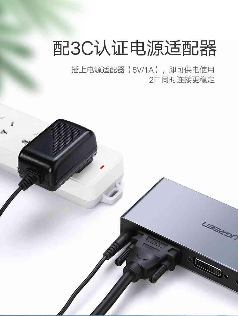 1. Brand: UGREEN 2. Code: 80647 - CM202 3. Color: Gray 4. Input: DVI 5. Output: 2 DVI 6. Standard: DVI-D [DVI Digital] 7. Power: 5V 8. Contact Material : Nickel 9. Housing Material :
