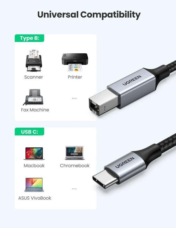 Dây cáp máy in Ugreen Type-C sang USB-B màu đen US370 - chube.vn