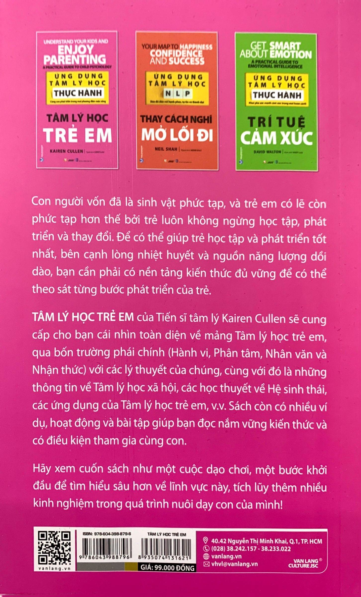 Tâm lý học trẻ em của Tiến sĩ tâm lý Karen Cullen sẽ cung cấp cho bạn cái nhìn toàn diện về mảng Tâm lý học trẻ em, qua bốn trường phái chính (Hành vi, Phân tâm, Nhân văn và Nhận thức) với các lý thuyết của chúng, cùng với đó là những thông tin về Tâm Lý Học Xã Hội, các học thuyết về Hệ sinh thái, các ứng dụng của Tâm lý học trẻ em, Sách còn có nhiều ví dụ, hoạt động và bài tập giúp bạn đọc nắm vững kiến thức và có điều kiện tham gia cùng con.