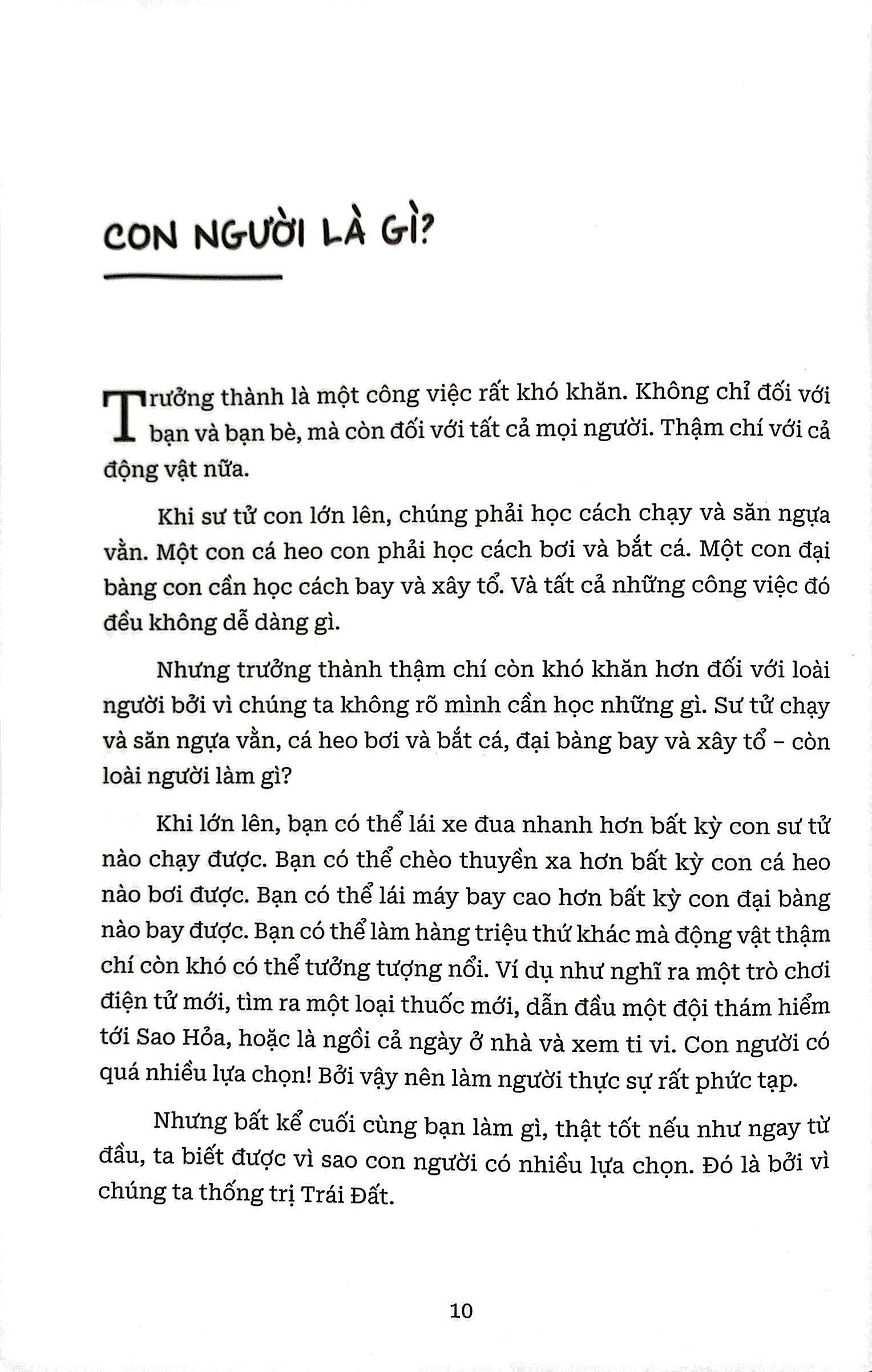 Đây là cuốn sách dành cho thiếu nhi với cách diễn đạt dễ hiểu, thú vị, lồng ghép những câu chuyện sinh động để phục vụ trẻ em từ 8 tuổi trở lên. Tuy nhiên bất cứ ai cũng có thể đọc và thưởng thức cuốn sách này, vì cuốn sách vẫn cung cấp những thông tin khoa học về tiến trình phát triển của loài Sapiens trên thế giới.