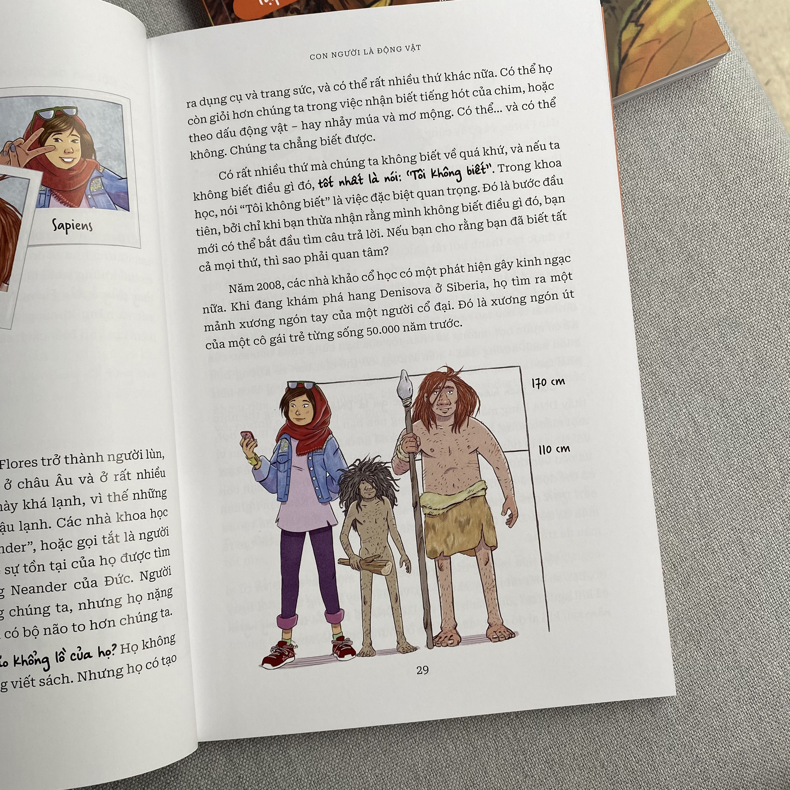 Bộ sách dự kiến gồm 4 tập, được in màu toàn bộ với nhiều tranh minh họa sinh động, đầy màu sắc của Ricard Zaplana Luiz – một họa sĩ người Tây Ban Nha có sở trường vẽ minh họa và vẽ cốt truyện cho các ấn phẩm dành cho thiếu nhi, khiến cho tác phẩm dễ hiểu, hấp dẫn, li kì, hài hước, đưa bạn đọc đi hết từ tò mò này đến tò mò khác, ví dụ như: khám phá nhiều bí ẩn về tổ tiên loài người cũng như rất nhiều động vật khác trên trái đất, từ việc so sánh kích thước não bộ, chế độ ăn uống, sự phát triển chiều cao và giao tiếp với nhau…