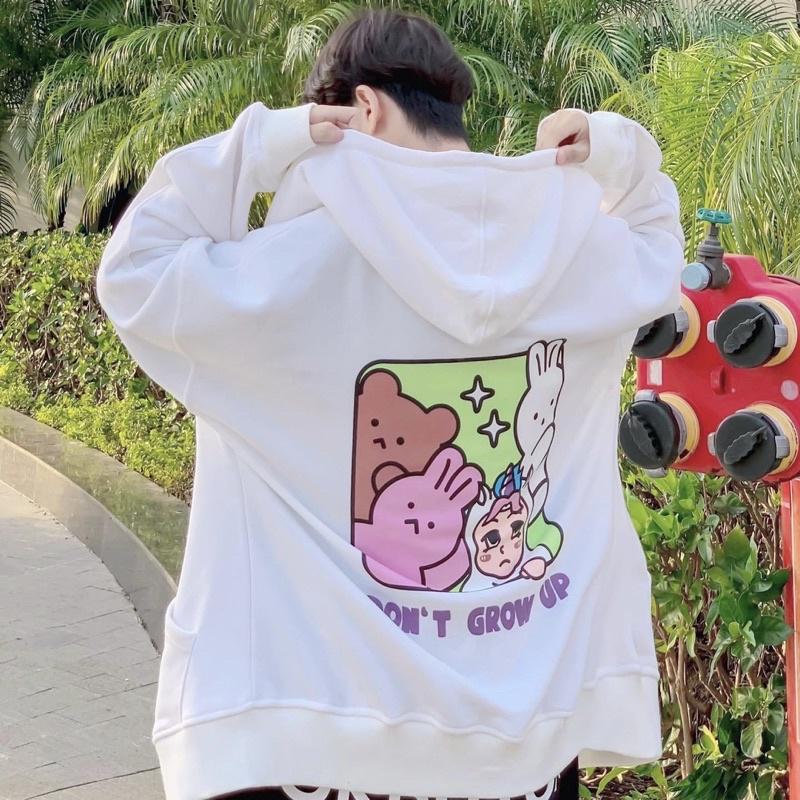 ✨UPZ Áo Khoác Dây Kéo Dont Grow Up (Trắng)