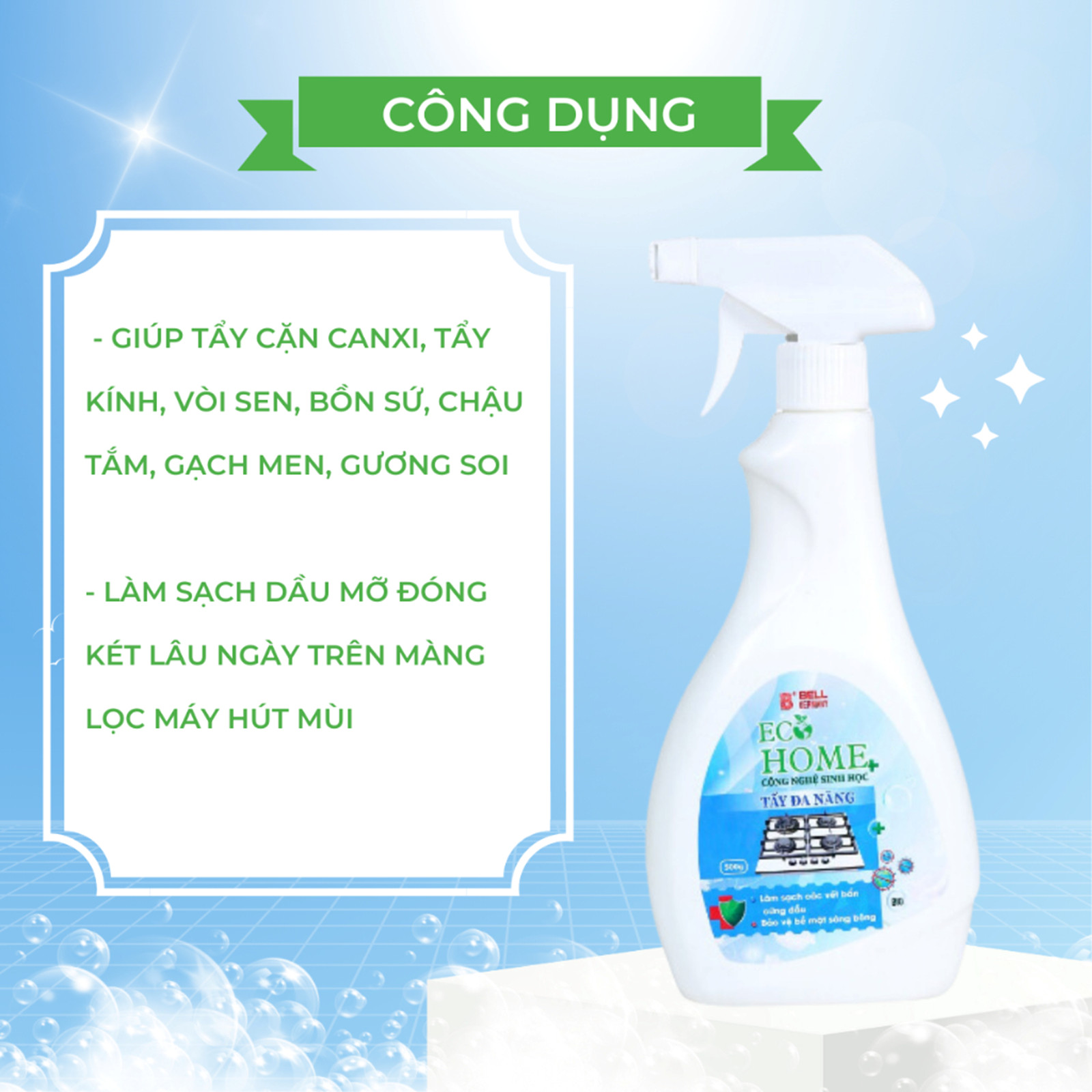 Mua tại TiktokXịt Tẩy Đa Năng Công Nghệ Sinh Học ECOHOME 500ML Tẩy Cặn Canxi, Tẩy Kính, Vòi Sen, Bồn Sứ, Chậu Tắm, Gạch Men, Gương Soi