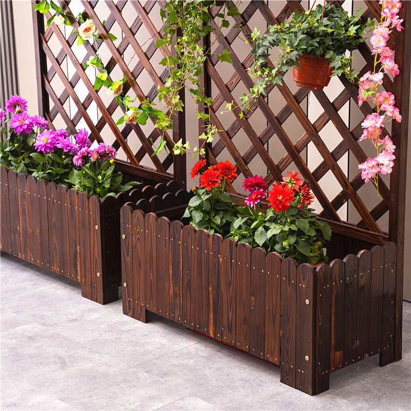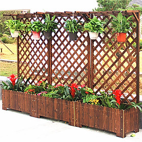Kệ gỗ vách ngăn sân vườn kèm chậu trồng hoa cây cảnh decor vintage gỗ thông tự nhiên có bảo hành Kệ gỗ vách ngăn decor sân vườn, quán cafe, trường học, homstay vô cùng