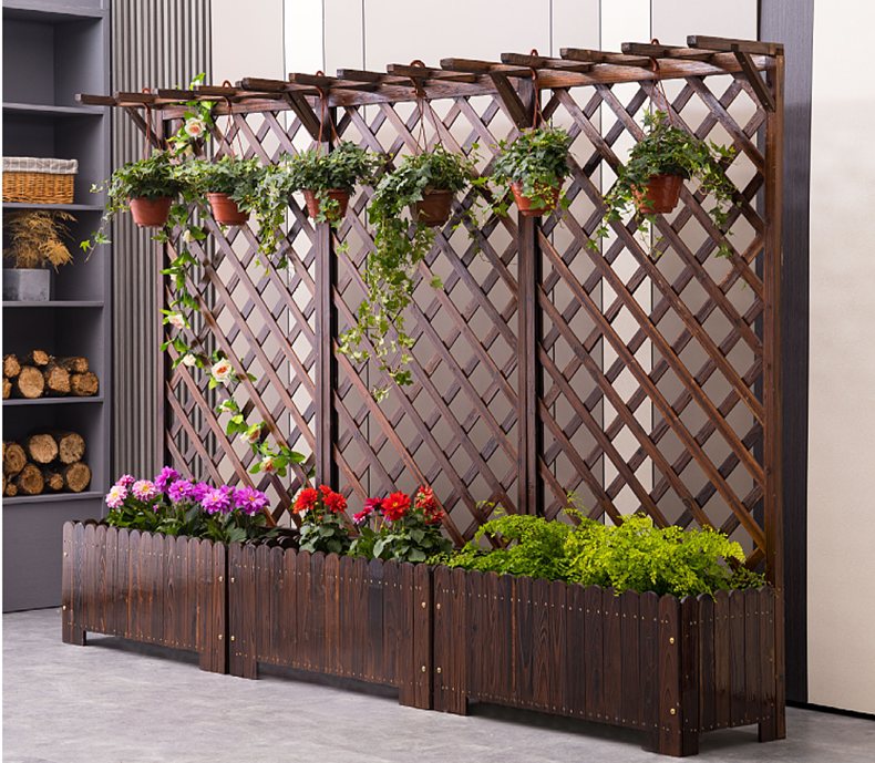 ✨Vách ngăn trang trí phòng khách sân vườn kèm chậu trồng hoa cây cảnh gỗ thông kiểu dáng vintage