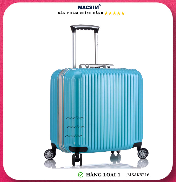 Vali Macsim được làm từ chất liệu nhựa nguyên chất PC. Tấm lót bên trong Poliester 150D xuất xứ Trung Quốc được REACH kiểm nghiệm và phê duyệt, bánh xe 360 độ hãng Hinomata của Nhật ; Khóa kéo thương hiệu SBS xuất xứ Trung Quốc, Khóa TSA hãng Master Lock của Mỹ. Thiết kế vali đơn giản lịch lãm vô cùng sang trọng, bền bỉ, tạo dấu ấn phong cách thời trang cá nhân của bạn trên mọi cuộc hành trình. Vali cao cấp Macssim thích hợp với những người thường xuyên di chuyển cần chiếc vali nhẹ, có độ bền tốt.