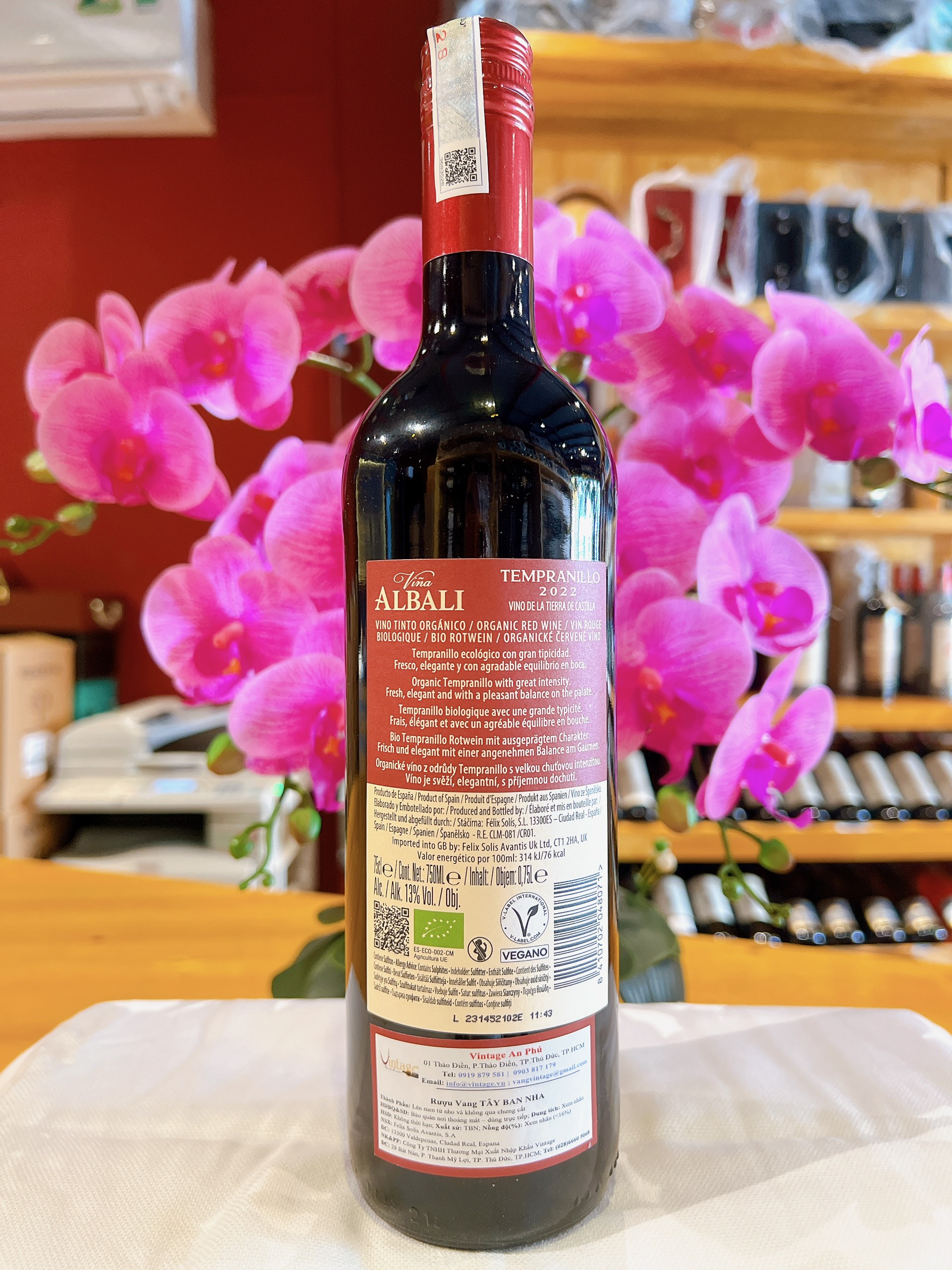 Các chùm nho được hai thủ công từ các vườn nho organic tiêu chuẩn châu Âu, không sài hóa chất. Vang màu anh đào đỏ đậm với hương thơm của dâu tây và các loại trái cây rừng, đây là một loại vang đỏ tươi mới, mượt mà và cân bằng Dung tích: 750ML V0L: 13% Xuất xứ: Tây Ban Nha
