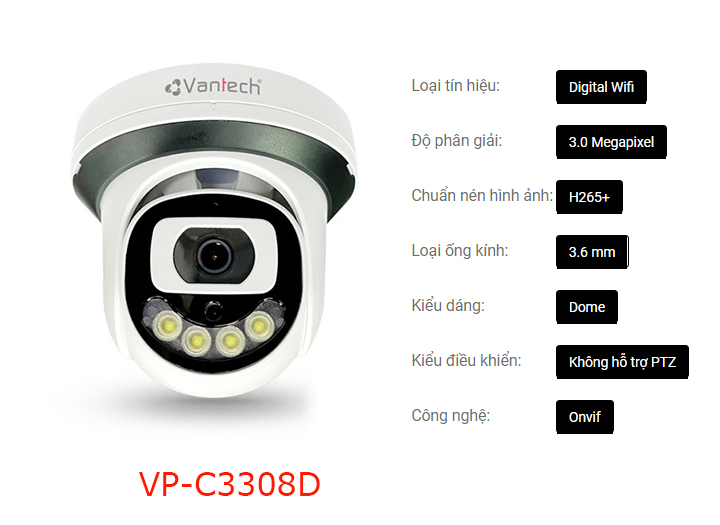 ✨Vantech Camera 3.0MP Network Colorful Dome VP-C3308D - Hàng chính hãng