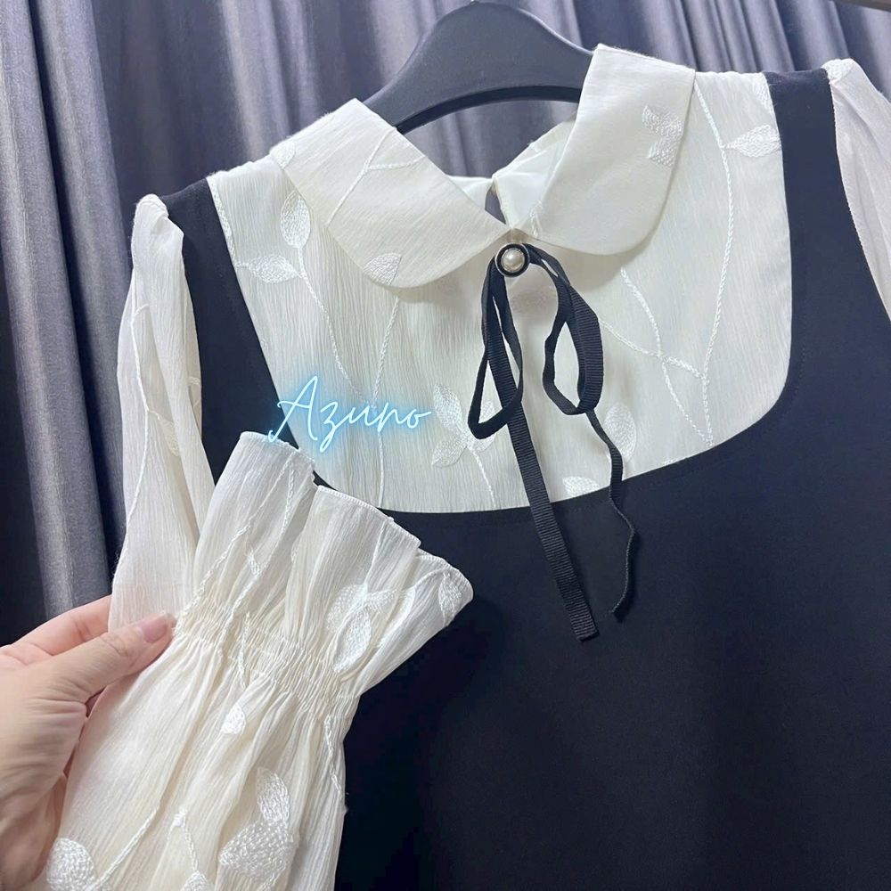 ✨Váy Bầu Thiết Kế- Đầm Bầu Công Sở Dài Tay Tơ Phối Dễ Thương V36