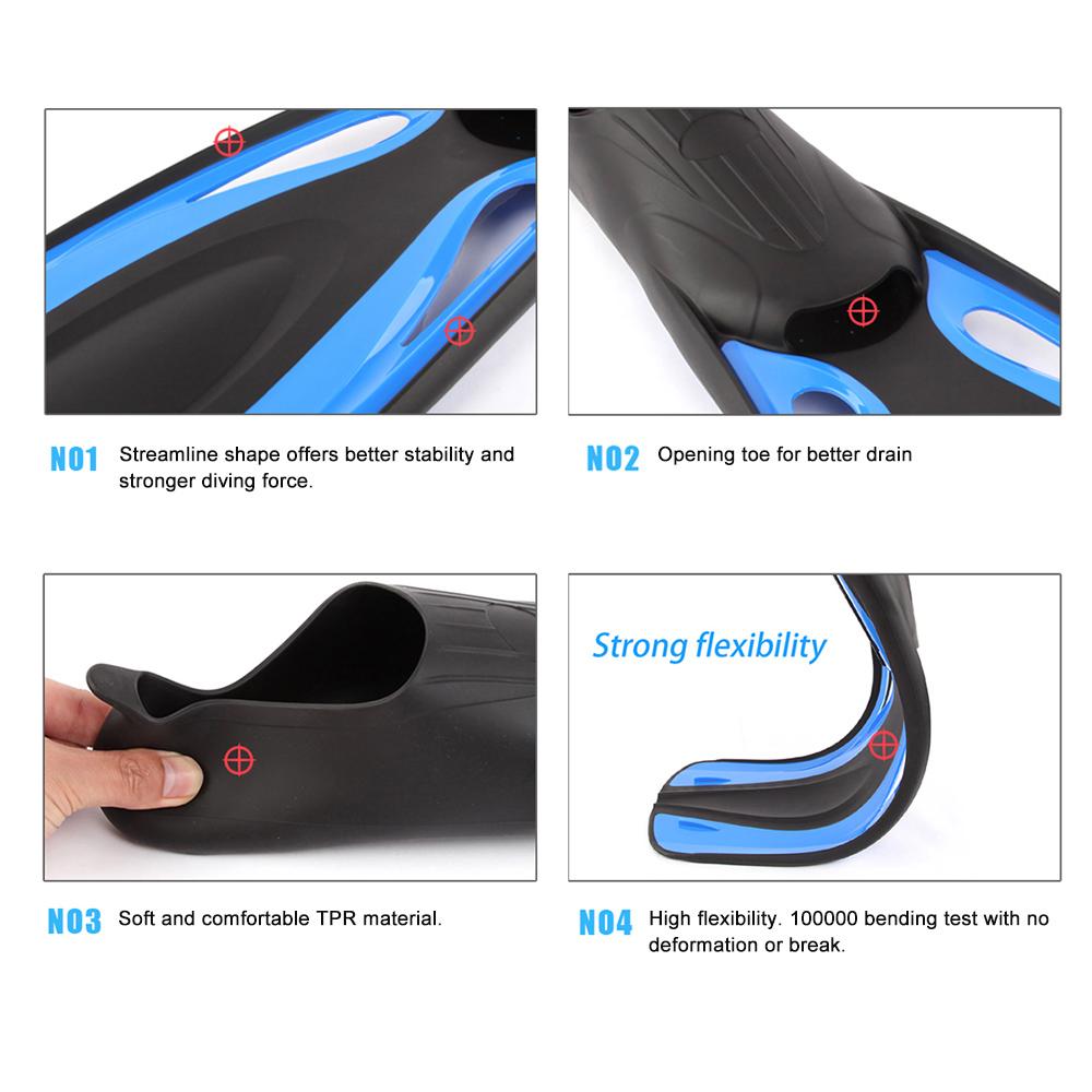 This pair of highly stylish and comfortable adult open-heel snorkeling fins is good snorkeling accessories.Features:Size reference: S: 5-6 (US), 38-39 (EU), 23-24 (JP) / M: 7-8 (US), 40-41 (EU), 24-2...