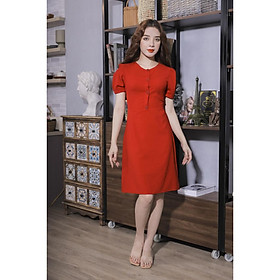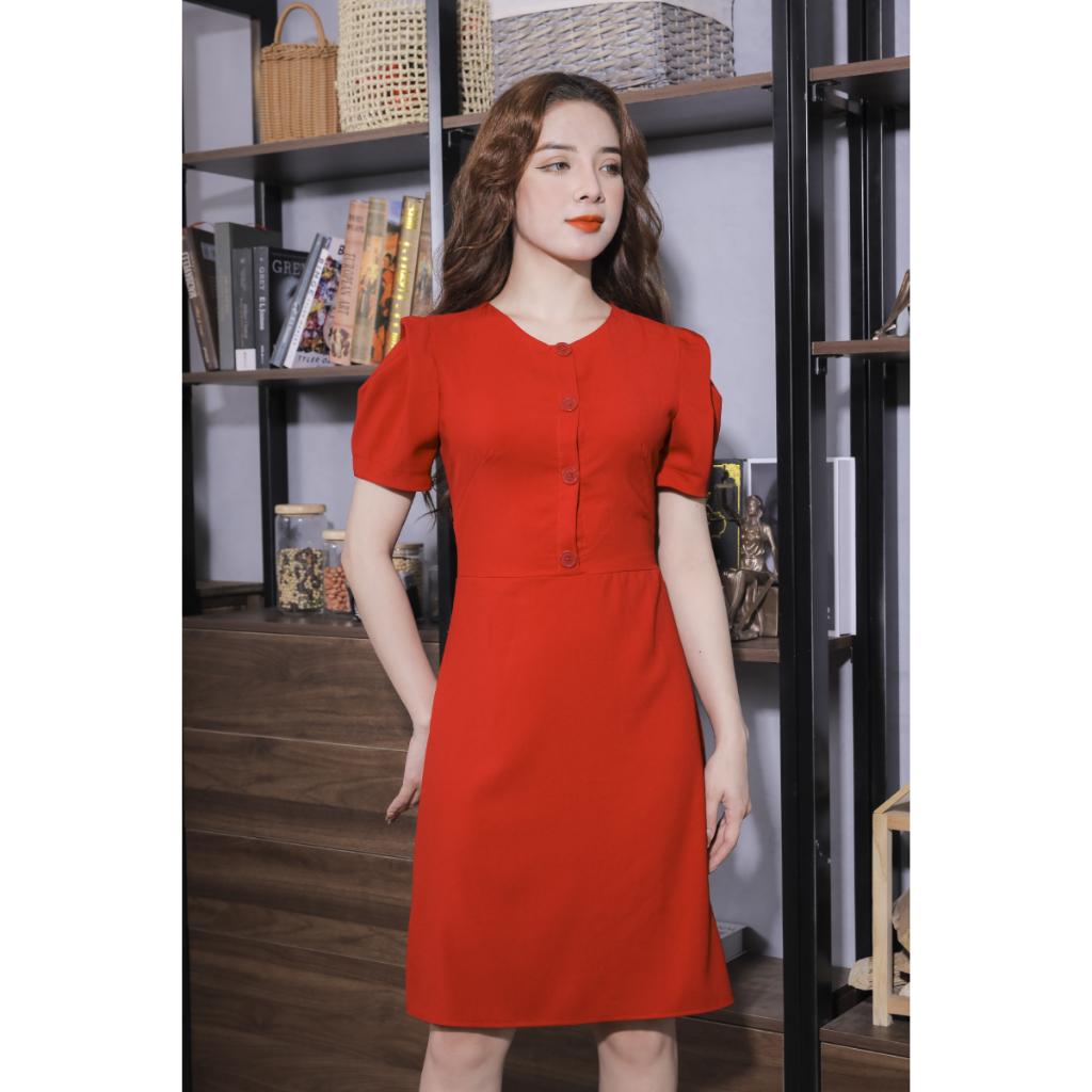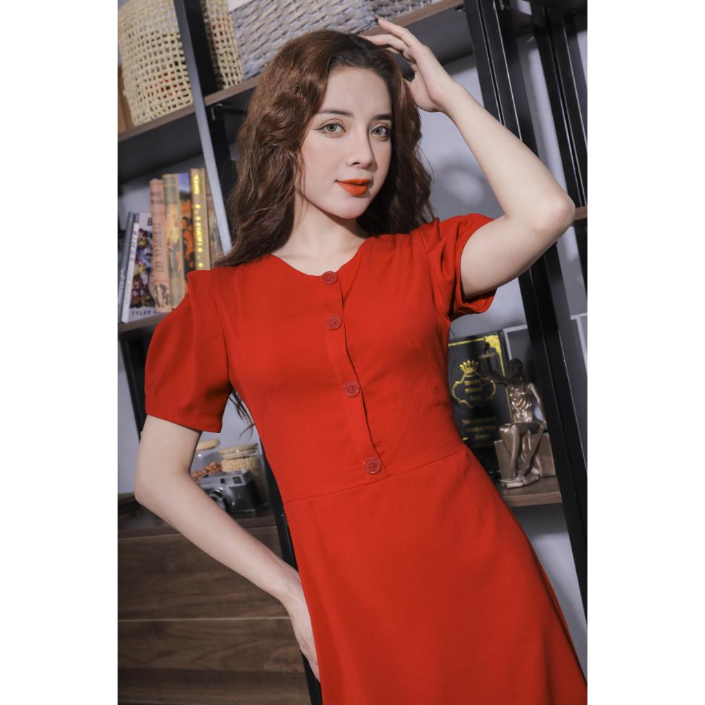 Váy Vải Trơn Cúc Trước Màu Đỏ Pi Home Of Beauty Made With Love 23V059