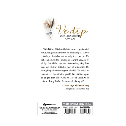 “Vẻ đẹp của những điều còn lại” là một quyển sách sâu sắc, cô đọng trí tuệ và sự thông thái mà Giáo sĩ Leder đã truyền đạt đến giáo đoàn của mình trong hơn ba thập kỷ. Ngoài ra, ông còn có khả năng khiến tất cả chúng ta cảm thấy dễ chịu, ngay cả với một chủ đề khó đề cập như cái chết. Mỗi trang của quyển sách này đều ẩn chứa thật nhiều bài học quý giá về cuộc sống và chắc chắn rằng tất cả chúng ta đều nên đọc qua một lần.