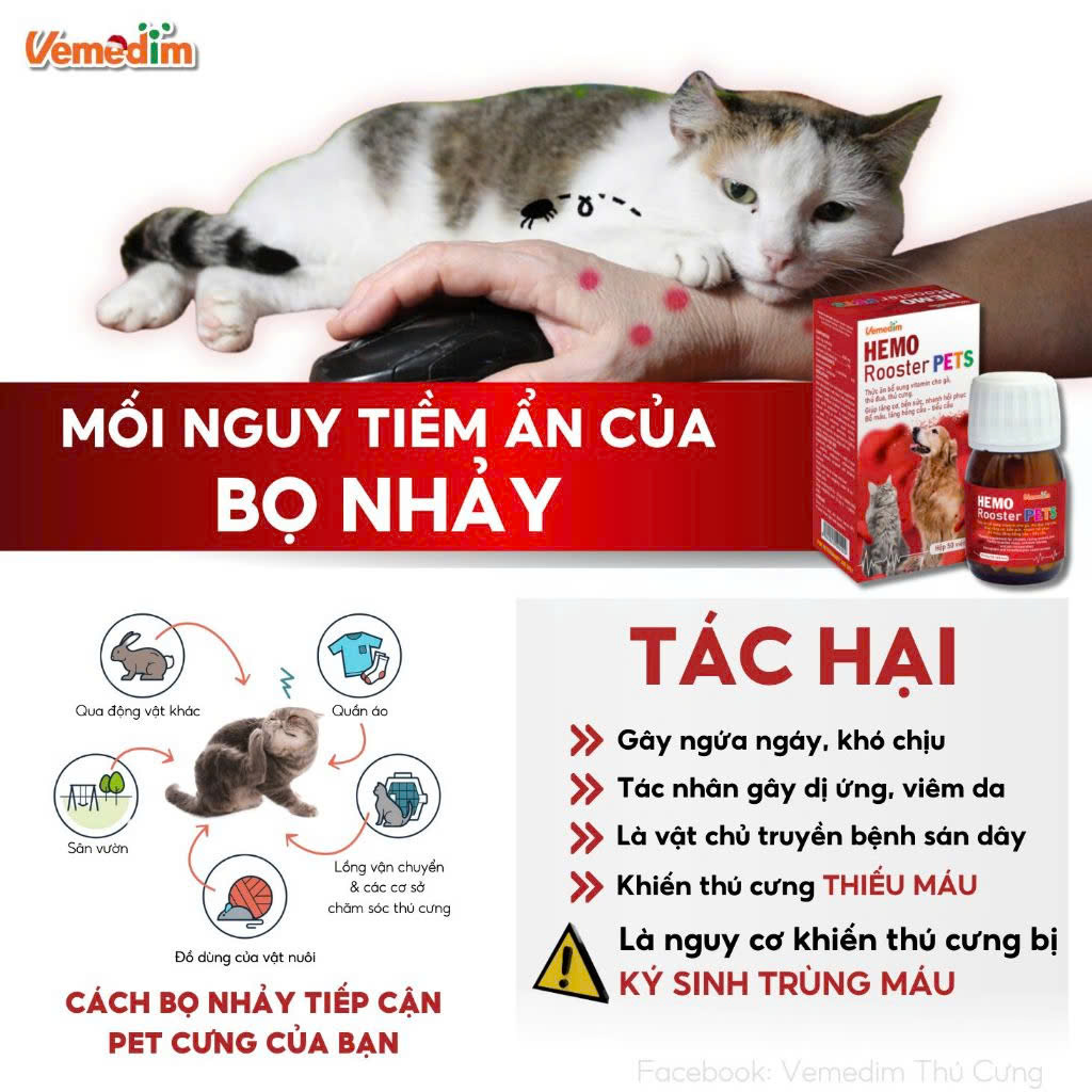 ✨Vemedim Hemo Rooster Pets Bổ Máu, Tăng cơ, Bền sức, Nhanh Hồi phục cho Chó mèo - Hộp 50 viên