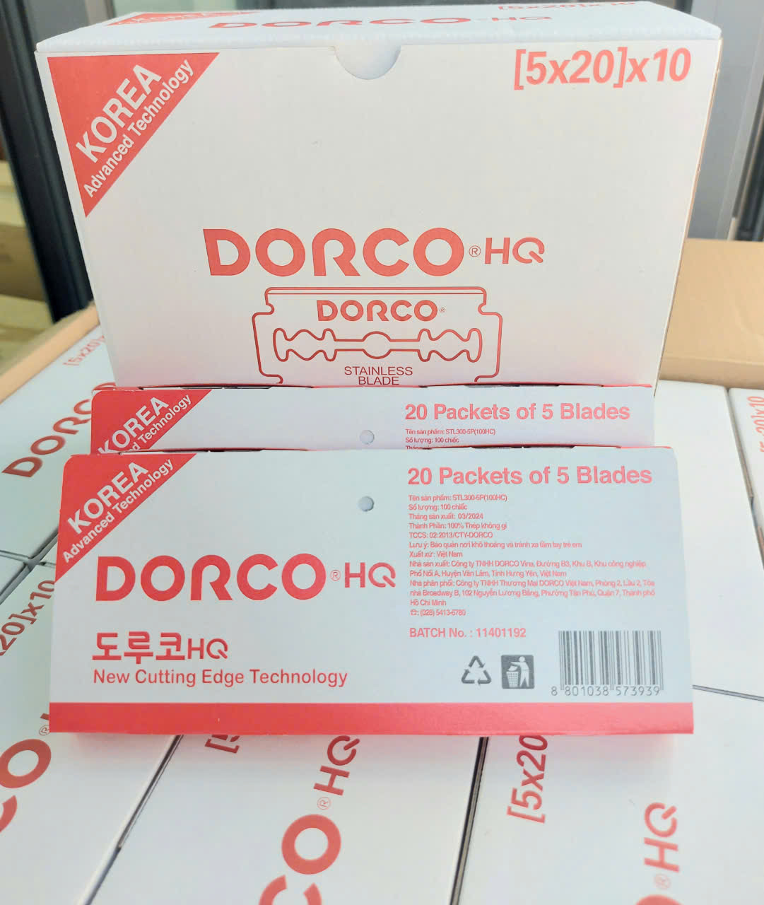 Vỉ 100 hộp lưỡi lam Dorco HQ màu đỏ ( Dao lam Dorco Đỏ) là sản phẩm lưỡi dao Dorco chính hãng Hàn Quốc Sản phẩm có độ mỏng lưỡi dao là 0.075mm giúp lưỡi