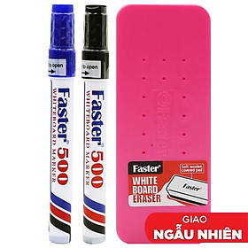 ✨Vỉ 2 Bút Lông Bảng Faster 500 Mực Xanh Và Đen + Đồ Bôi Bảng - Faster WBE-F-SET6-BLBK (Mẫu Màu Giao Ngẫu Nhiên)