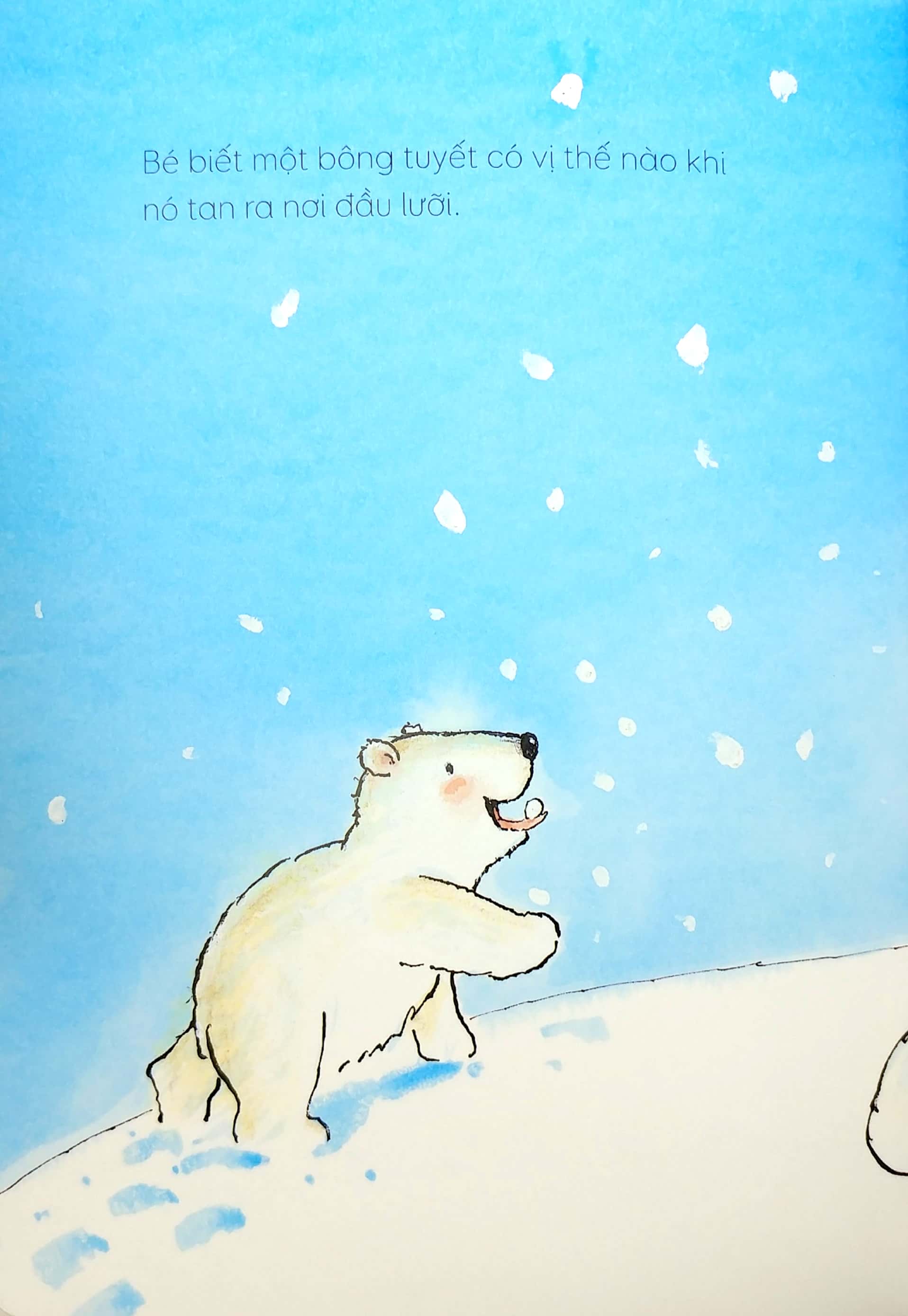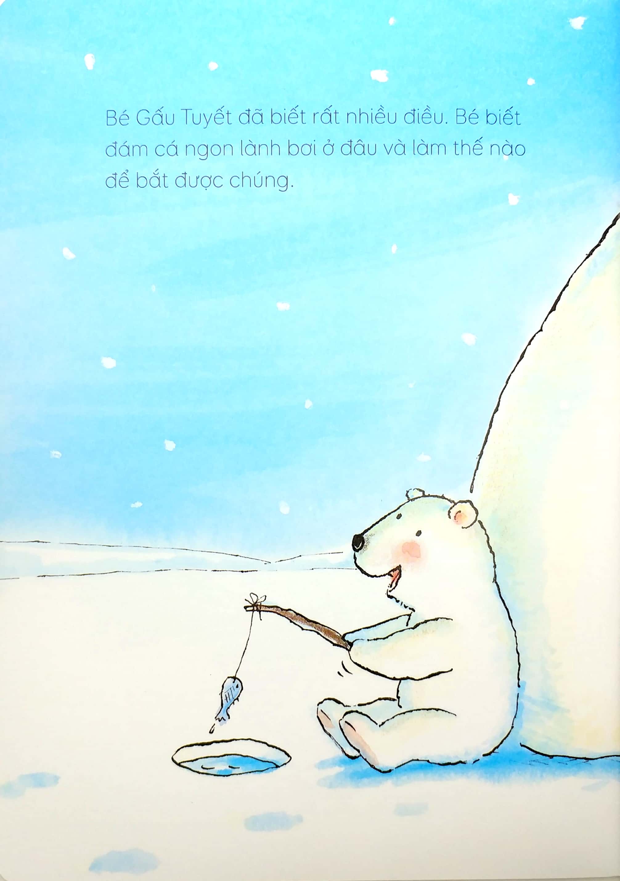 Bé Gấu Tuyết đã biết rất nhiều điều: đám cá ngon lành bơi ở đâu, bông tuyết có vị thế nào, gió có thể mơn man mà cũng có thể buốt táp, khi nào mặt trời nhô và khi nào mặt trăng ló. Bé cũng biết nếu ở ...