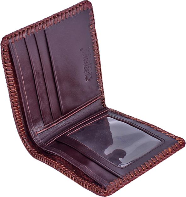 Ví/Bóp nam Huy Hoàng da bò viền chỉ màu nâu 2130
