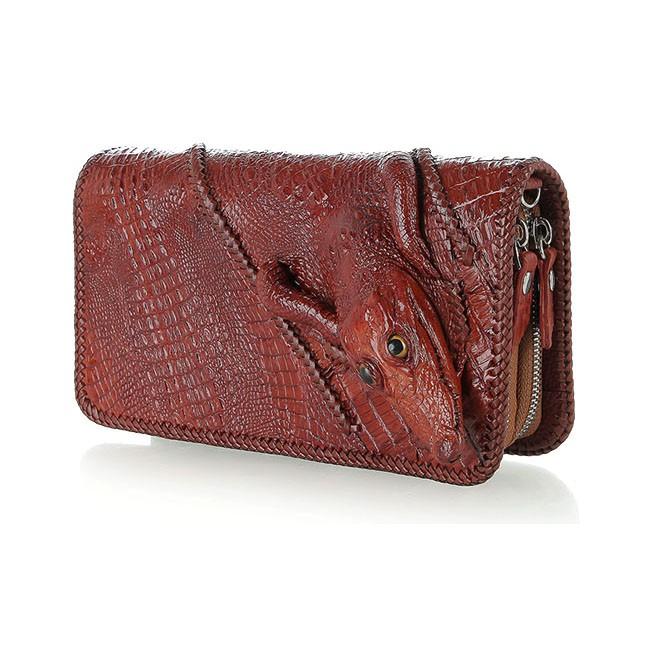- Tên sản phẩm: Ví nữ da cá sấu Huy Hoàng nhiều ngăn đầu cá sấu đan viền màu nâu đỏ HP3733