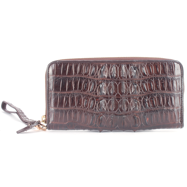 Ví da cá sấu cầm tay 2 ngăn khoá kéo | Ví cầm tay màu nâu đỏ