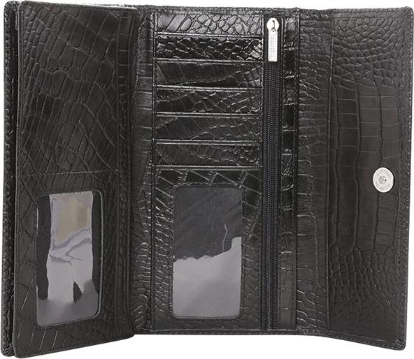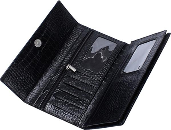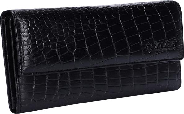 Ví/Bóp nữ Huy Hoàng da bò vân cá sấu 3 gấp màu đen 3106