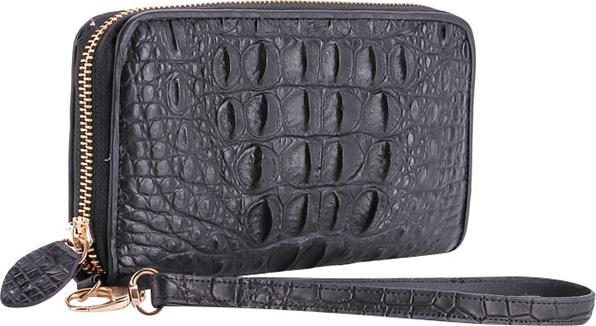 Ví/Bóp nữ Huy Hoàng da bò vân cá sấu 2 gấp màu đen 3102