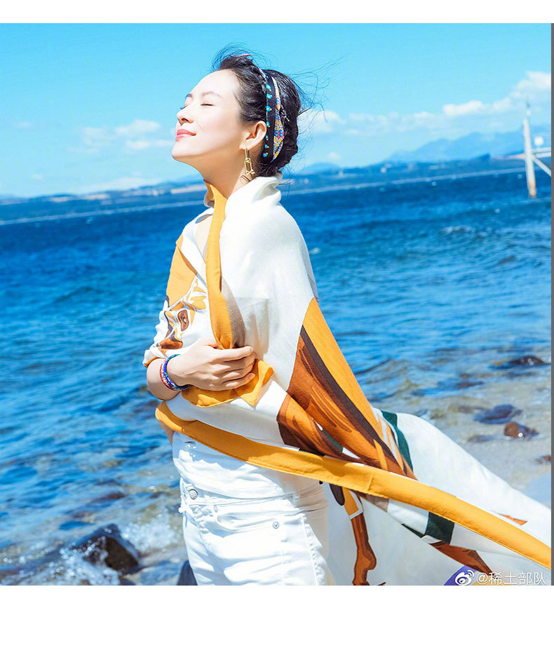 Khăn choàng cổ phong cách cổ điển 90x90cm Khăn sử dụng 4 mùa: làm áo hoặc váy với bikini, chùm đầu đi biển chống nắng, tạo dáng lên hình nổi bật với kính râm Hè