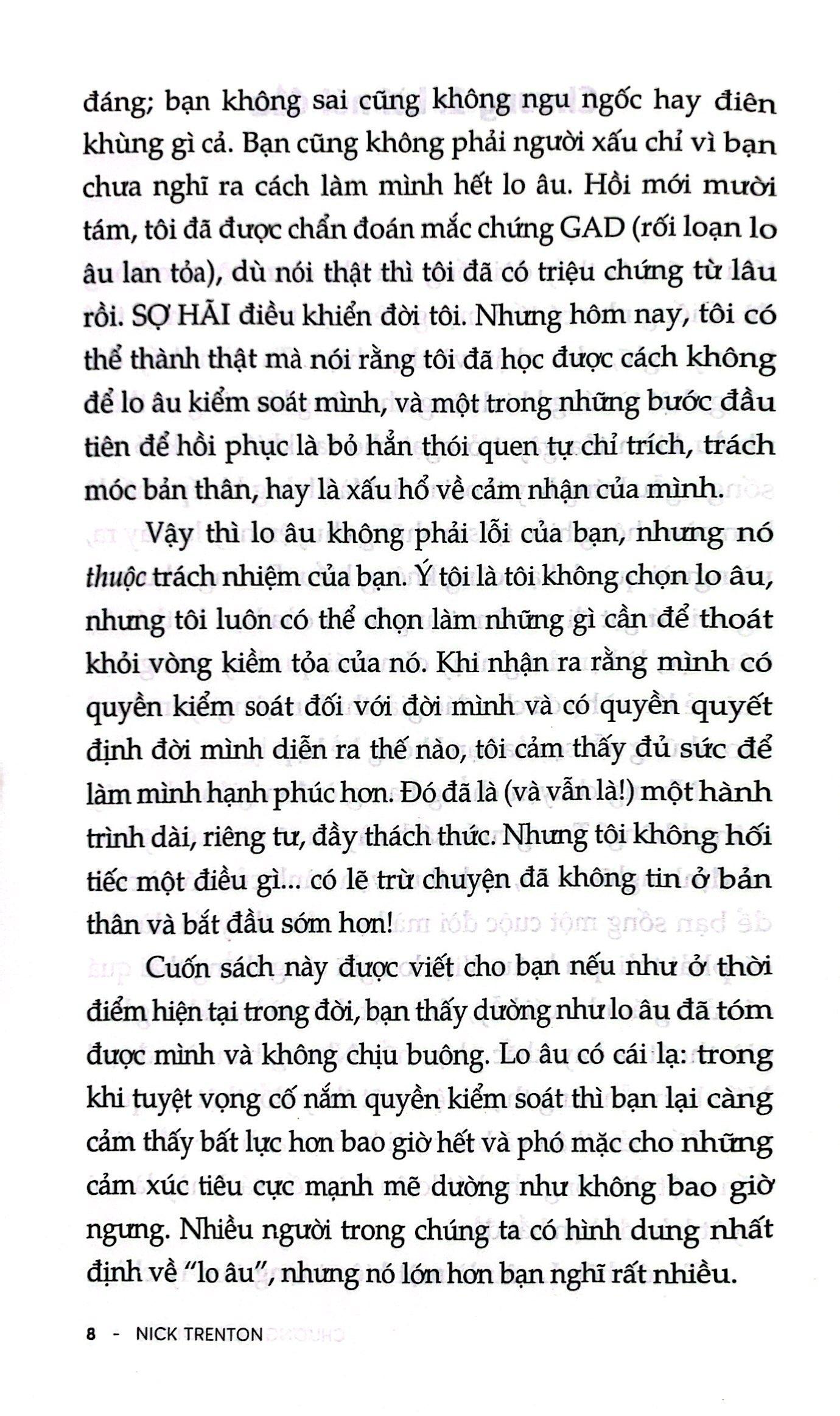 Trong cuốn sách này, tác giả danh tiếng Nick Trenton sẽ đưa bạn vượt qua tất cả trở ngại nội tại bằng các kỹ thuật và cách tiếp cận khoa học đã được kiểm chứng hiệu quả để giúp bạn tổ chức lại bộ não. Loại trừ các khuôn mẫu tư duy độc hại và thay đổi cá thói quen trong tâm trí. Một cuốn sách viết ra từ ngòi bút của người thực sự hiểu bạn đã trải qua những gì. Từ đó, bạn có thể buông bỏ thói suy nghĩ quá độ, đạt được thêm nhiều thành tựu, cảm nhận sự an tĩnh trong tâm trí và khai mở tiềm năng của bản thân.