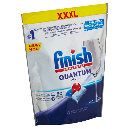 Kết thúc Quantum làm sạch sâu và tỏa sáng rực rỡ ngay từ lần sử dụng đầu tiên. Hiệu quả ngay cả khi không rửa bát đĩa trước. Viên nang dễ sử dụng, ở dạng màng có thể hòa tan, loại bỏ tất cả các loại cặn thức ăn, ngay cả ở nhiệt độ thấp.