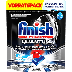 Viên rửa bát chén Finish Quantum max 60 viên (Nk Đức ) Lưu ý: - Mẫu mã bao bì có thể thay đổi theo từng lô hàng nhập về nhưng chất lượng không đổi. -