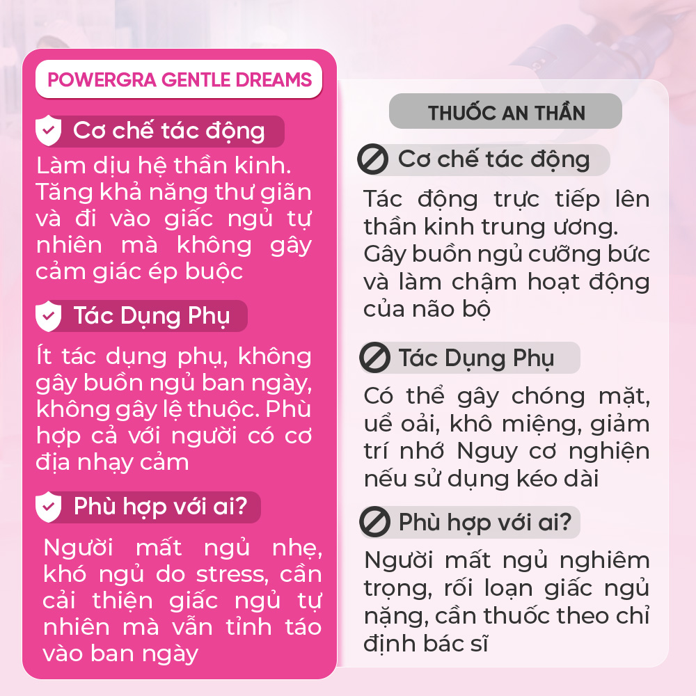 - Thông tin: Viên uống cải thiện tình trạng mất ngủ và ngủ kém Powergra Gentle Dreams là giải pháp từ thiên nhiên, dành riêng cho những ai đang chật vật với giấc ngủ chập