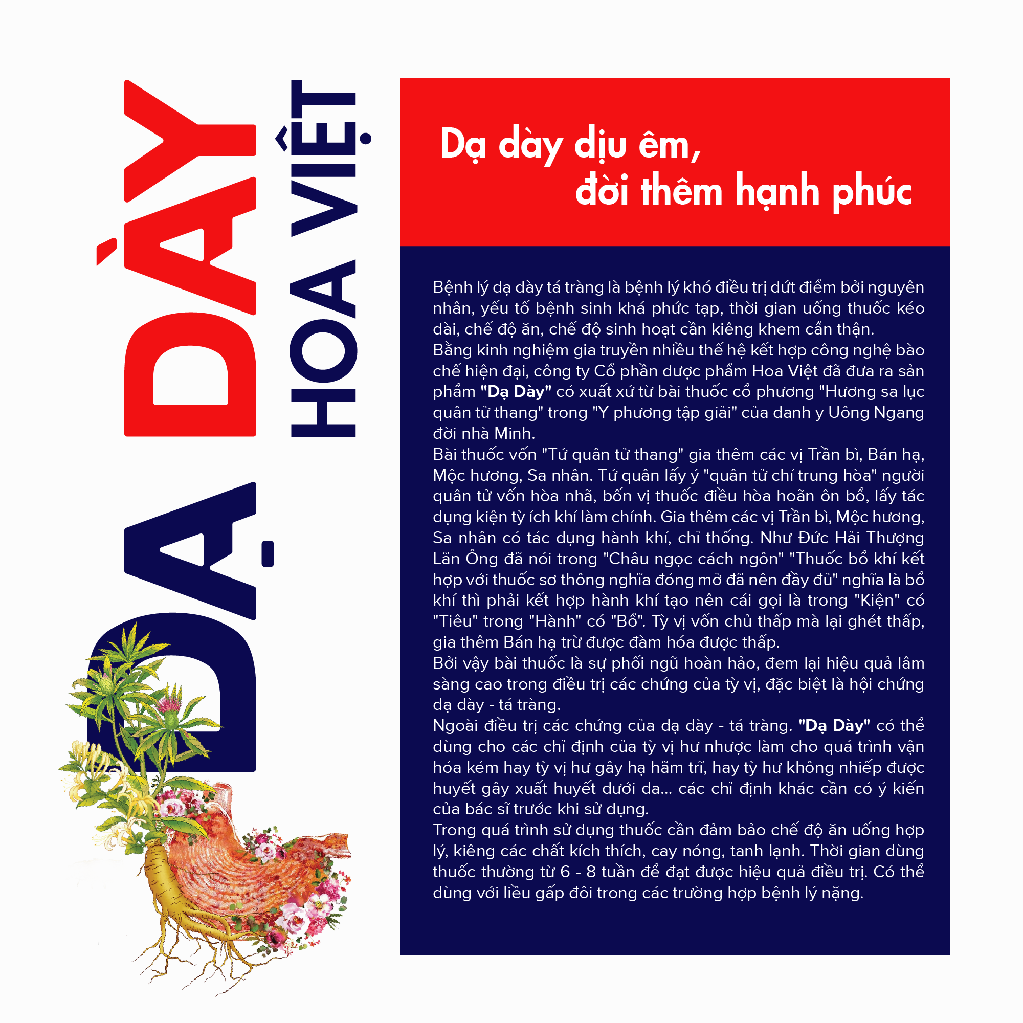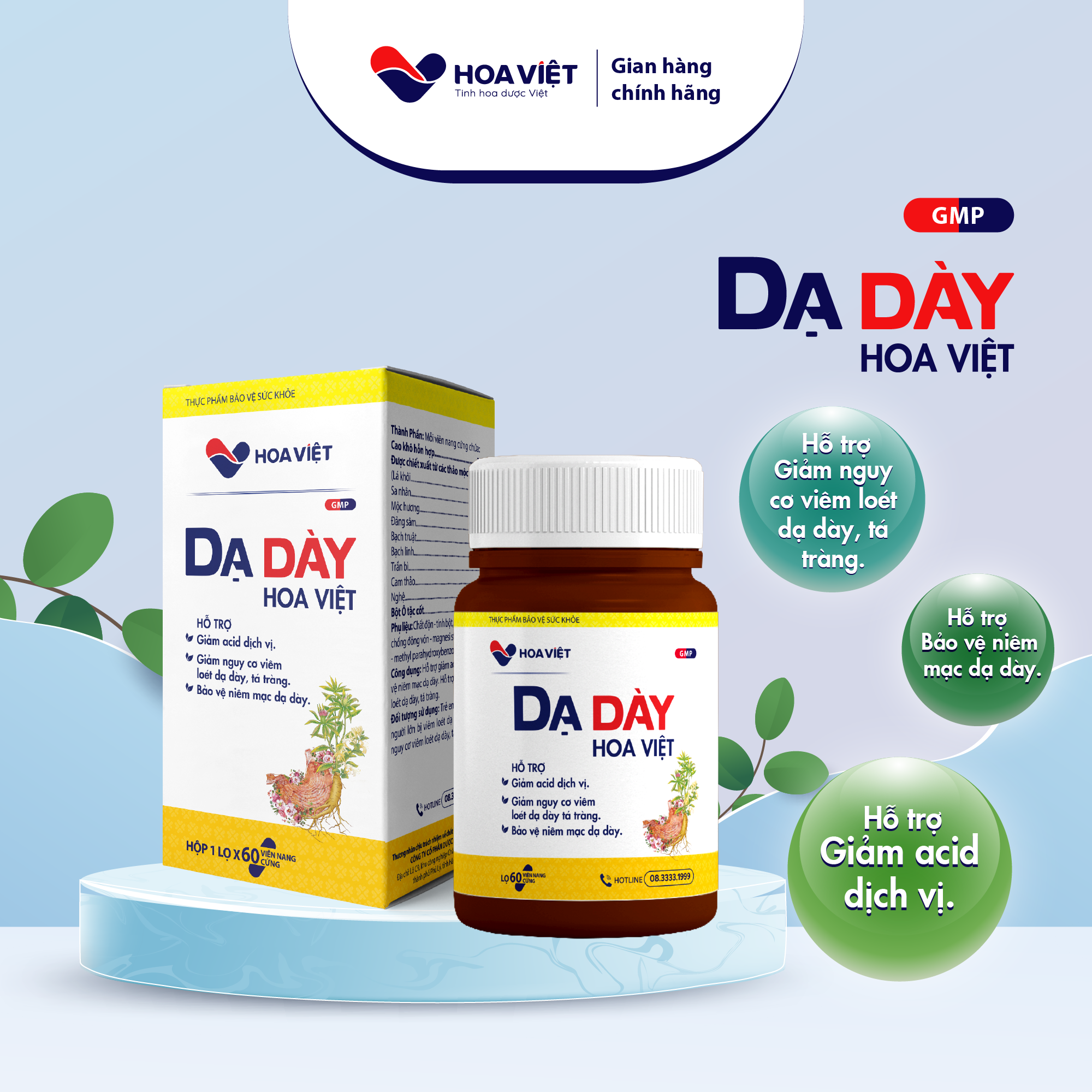 - Viên uống Dạ dày Hoa Việt hỗ trợ điều trị viêm dạ dày mạn tính, viêm loét dạ dày - tá tràng (không do Helicobacter Pylori).