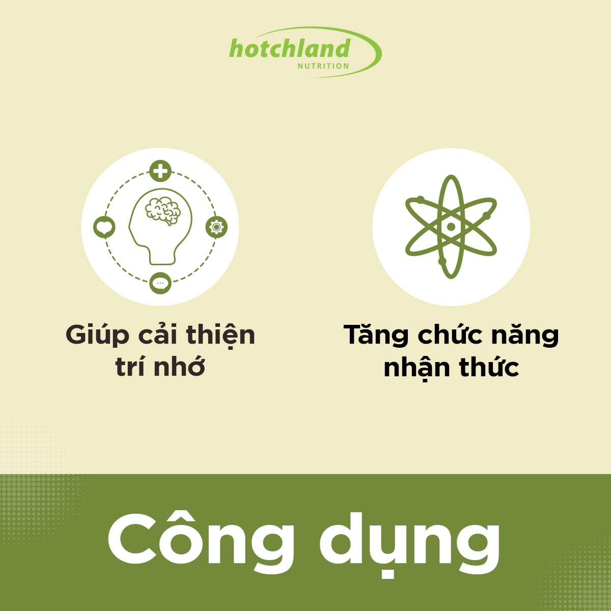 - Bổ sung lá rau má GOTU KOLA (150mg): Tăng cường trí nhớ, giảm lo âu, chất chống oxy hóa tốt cho hệ thần kinh.