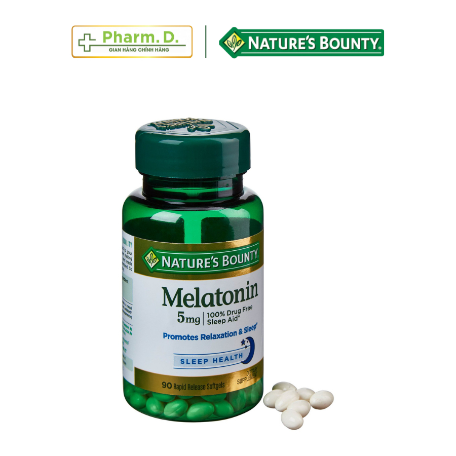 Mua tại TiktokViên Uống NATURE'S BOUNTY Melatonin 5mg Hỗ Trợ Điều Hòa Giấc Ngủ Nature's Bounty Melatonin 5mg cung cấp hoạt chất melatonin giúp điều hòa giấc ngủ, giảm căng thẳng do bị mất ngủ, suy nhược, căng thẳng thần kinh. Sản phẩm được nghiên cứu và sản xuất bởi Nature's Bounty, thương hiệu chăm sóc sức khỏe nổi tiếng tại Mỹ. Thương hiệu: Nature's Bounty Xuất xứ: Mỹ Hạn sử dụng: Xem trên bao bì sản phẩm Quy cách đóng gói: Hộp 60 Viên THÀNH PHẦN MELATONIN CÓ TRONG 1 VIÊN: