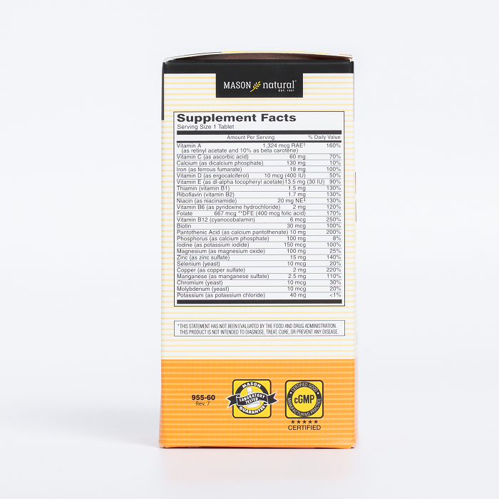 Viên vitamin và khoáng tổng hợp cho bầu Mason Natural Daily Multiple Vitamins With Minerals 60 viên ĐẶC ĐIỂM NỔI BẬT: - Là sản phẩm của thương hiệu Mason nổi tiếng nước Mỹ, đây là