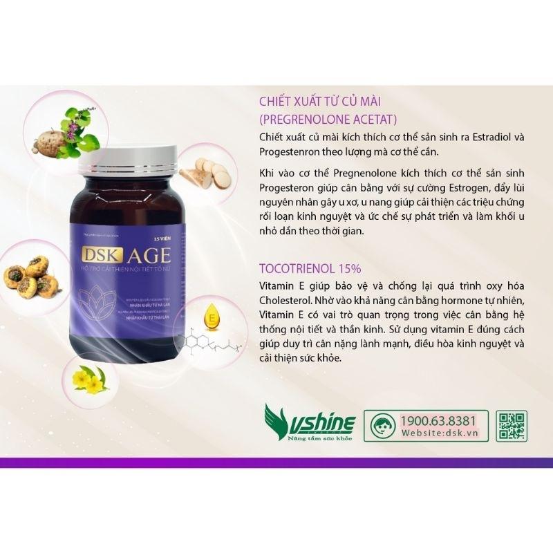 ✨Viên uống nội tiết tố nữ DSK AGE giúp cân bằng nội tiết tố, giúp giảm nám, sạm da, nhăn da giúp da săn chắc - Hộp 3 Lọ x 15 Viên