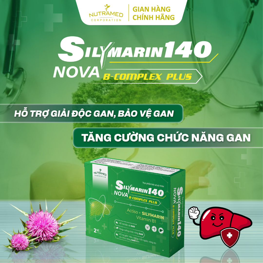 SILYMARIN 140 B - COMPLEX PLUS - Giải pháp hỗ trợ giải độc gan, bảo vệ gan, tăng cường chức năng gan   THÀNH PHẦN  ️  Chiết xuất Kế sữa (Silybum marianum extract); Cao Diệp hạ châu (Phyllanthus urinaria); Cao Actiso (Cynara scolymus); Cao Cà gai leo (Solanum procumbens); Vitamin PP (Nicotinamid); Vitamin B1 (Thiamin hydrochlorid); Vitamin B6 (Pyridoxin hydrochlorid)   CÔNG DỤNG    ️  Hỗ trợ giải độc gan, bảo vệ gan, tăng cường chức năng gan.  ️  Hỗ trợ giảm triệu chứng mẩn ngứa, vàng da có chức năng gan kém.     ĐỐI TƯỢNG SỬ DỤNG  ️  Người lớn có chức năng gan kém.  ️  Người lớn uống rượu, bia gây hại đến gan.   HƯỚNG DẪN SỬ DỤNG  ️   Người lớn: Uống 1 viên/lần x 3 lần/ngày. Uống trước bữa ăn 30 phút.   KHÔNG SỬ DỤNG TRONG TRƯỜNG HỢP  ️  Phụ nữ có thai.  ️  Người mẫn cảm, kiêng kỵ với bất kỳ thành phần nào của sản phẩm.   LƯU Ý  ️  Thực phẩm này không phải là thuốc, không có tác dụng thay thế thuốc chữa bệnh.  ️   Người đang dùng thuốc tham khảo ý kiến chuyên gia y tế trước khi sử dụng.   BẢO QUẢN   ️  Nơi khô ráo, nhiệt độ dưới 30°C, tránh ánh sáng mặt trời.  ️  Để xa tầm tay trẻ em.   THÔNG TIN SẢN PHẨM Tên sản phẩm: SILYMARIN 140  - B COMPLEX PLUS Quy cách: Hộp 2 vỉ x 15 viên. Hạn sử dụng: 36 tháng kể từ ngày sản xuất. Tiêu chuẩn: TCCS   _ NUTRAMED - KHƠI NGUỒN KHOA HỌC TỚI CUỘC SỐNG   Nhà máy đạt chuẩn WHO – GMP. Nguyên liệu được kiểm tra chất lượng khắt khe bởi nhà máy đạt chuẩn GMP.